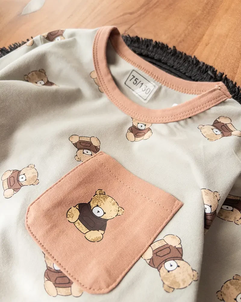ست راحتی یقه گرد خرس و ماشین خاکی