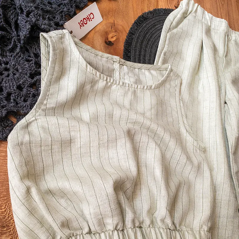 ست کراپ و شلوار راهراه سبز روشن، یه انتخاب خنک و راحت برای تابستون که استایل دخترونه و ساده و شیکی به کوچولوتون هدیه میده.