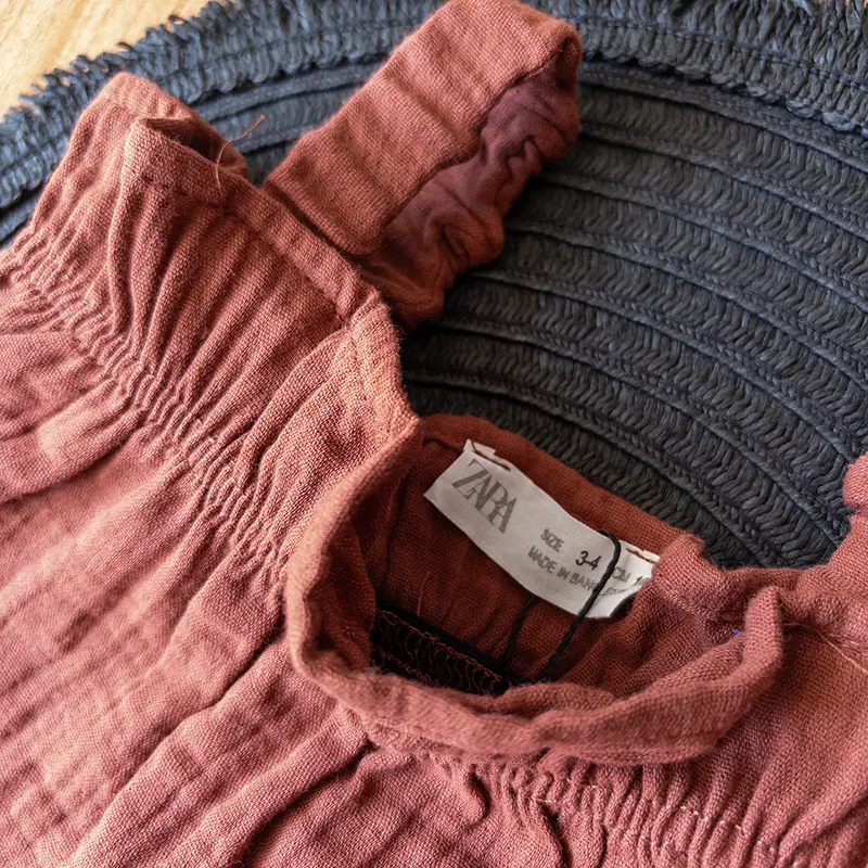 ست کراپ و شلوارک دخترونه زارا با ترکیب رنگ کرم و قهوهای، یه انتخاب خنک، شیک و راحت برای روزای تابستونیه.