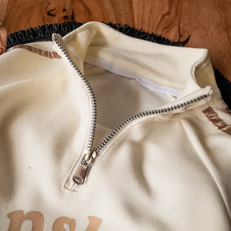 ست نیمزیپ و شلوار دخترانه کرم