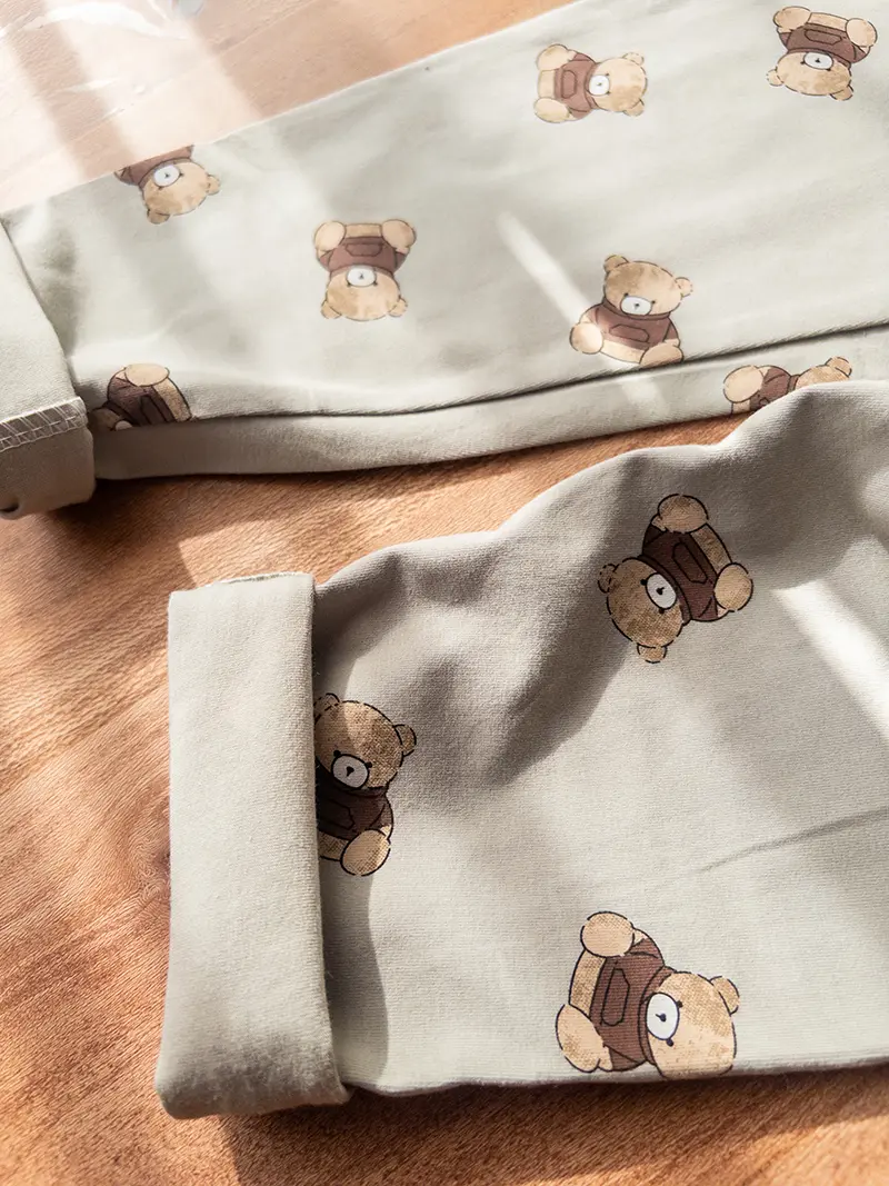ست راحتی یقه گرد طرح تدی سبز با جیب کرم