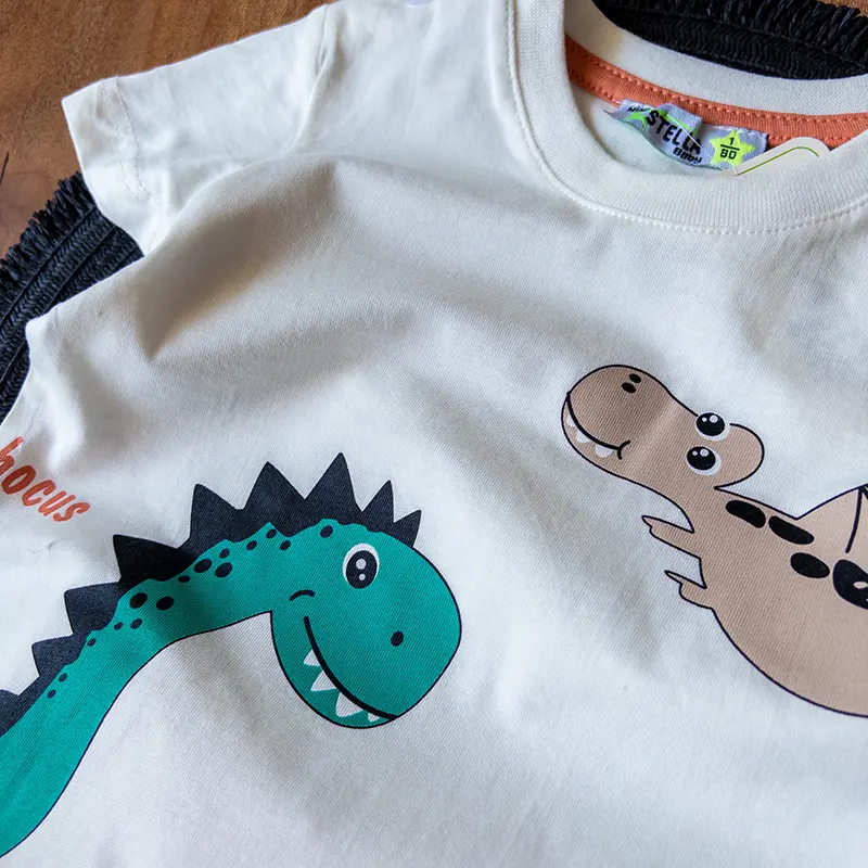تیشرت و شلوارک استلا طرح دایناسور آجری