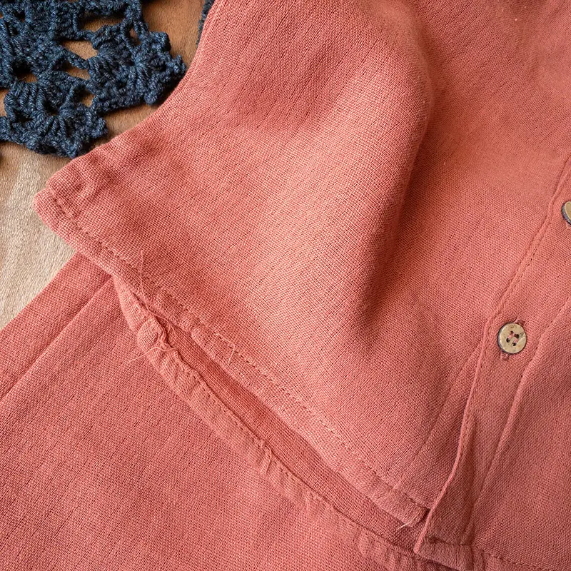 - پیراهن آجری دکمهدار با جیب سینه