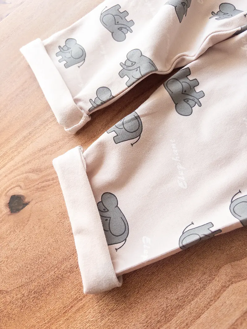 این ست بچگانه با چاپ فیل‌های کارتونی طوسی روی زمینه‌ای کرم، یه انتخاب ساده و دوست‌داشتنی برای استفادهٔ روزمره است. رنگ‌های ملایم لباس، حس آرامش و لطافت خاصی ایجاد می‌کنن و طرح فیل‌ها هم شادی و کودکانه‌بودن لباس رو بیشتر می‌کنه.