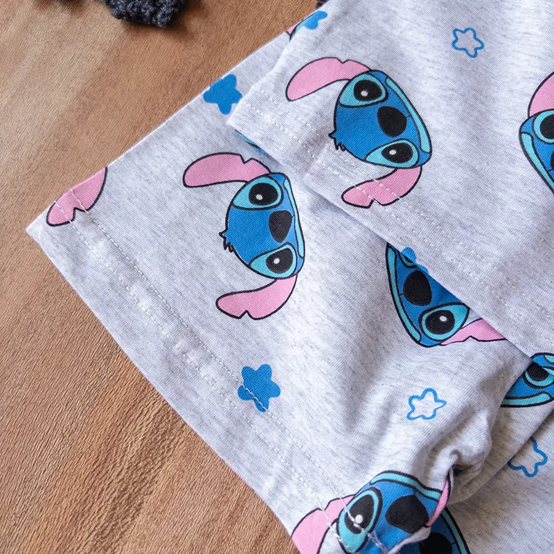 ست راحتی تیشرت و شلوارک استیچ طوسی، یه انتخاب فانتزی و شاد برای کوچولوهای دوستداشتنیه. طراحی پر از طرح استیچ کارتونی با گوشهای صورتی و زمینه طوسی، این ست رو خاص و متفاوت کرده. وجود جیب آبی روی تیشرت با چاپ استیچ، ظاهر این لباس رو جذابتر و بچگانهتر میکنه.