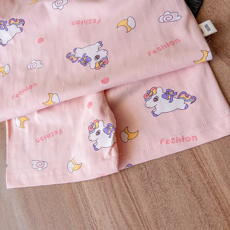 ست راحتی تیشرت و شلوارک طرح اسب تکشاخ صورتی