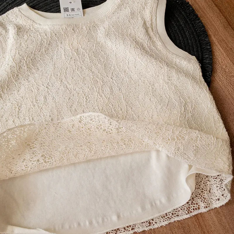 یه ست شیک و خنک برای تابستون، با پارچه توری لطیف و رنگ سفید جذاب که هر کوچولویی رو مثل فرشته‌ها می‌کنه.